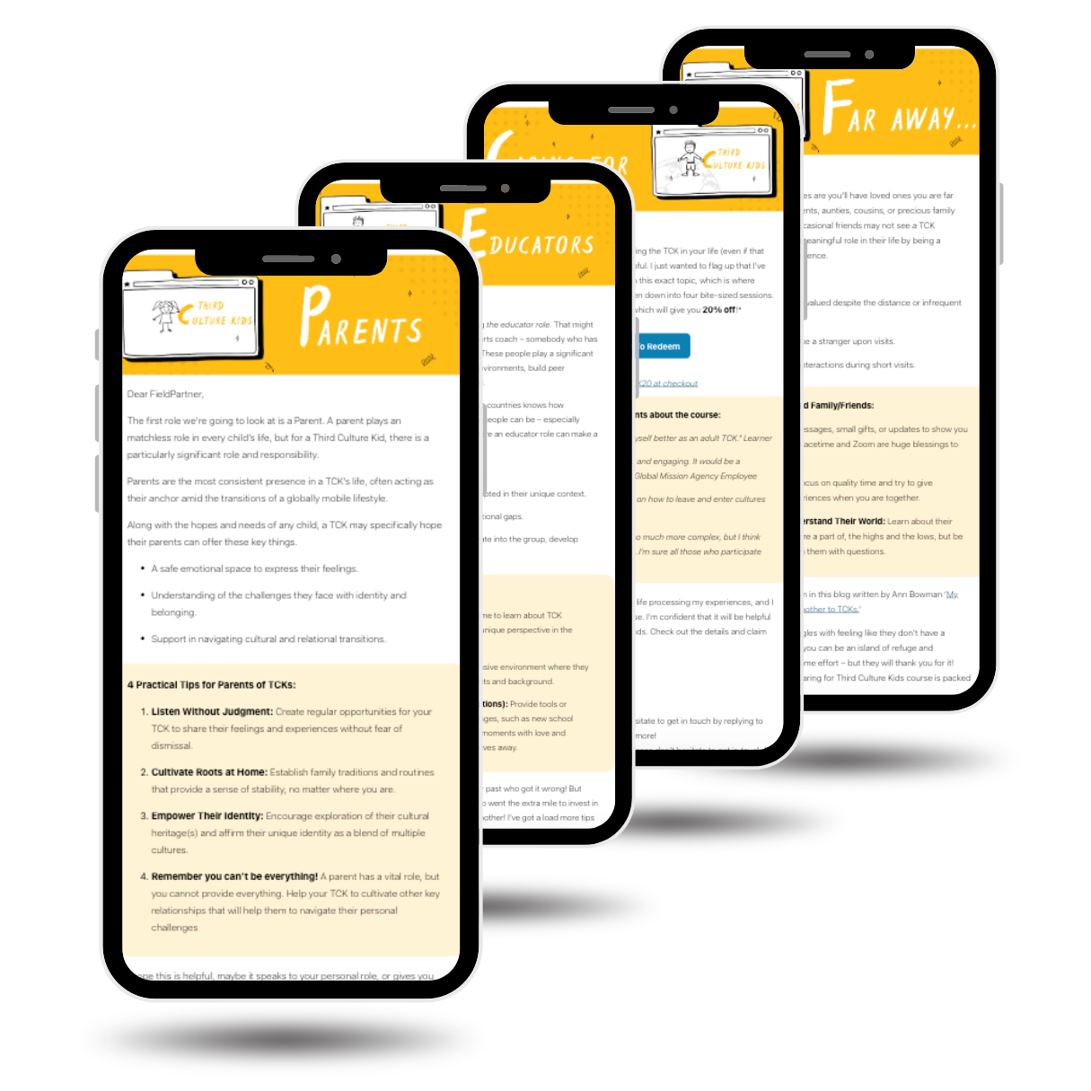 After you sign up, we'll send you a few emails over the coming weeks about four key TCK relationships, each with tips on how to make positive impact in your TCK's life!
